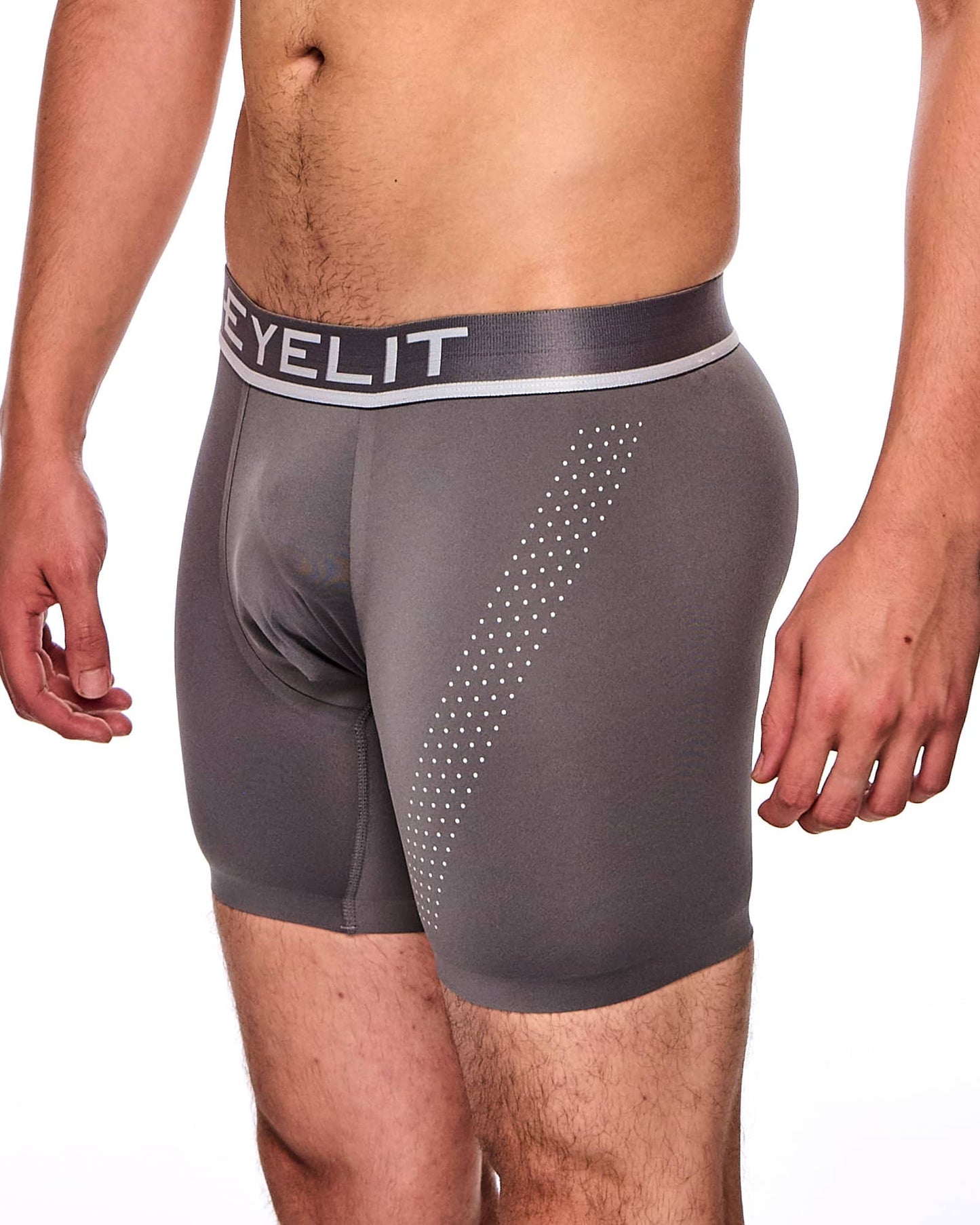 Boxer con elástico a la vista al tono en microfibra con elastano con terminaciones termoselladas y transfers en delantero y espalda. Una prenda anatómica, liviana y confortable.