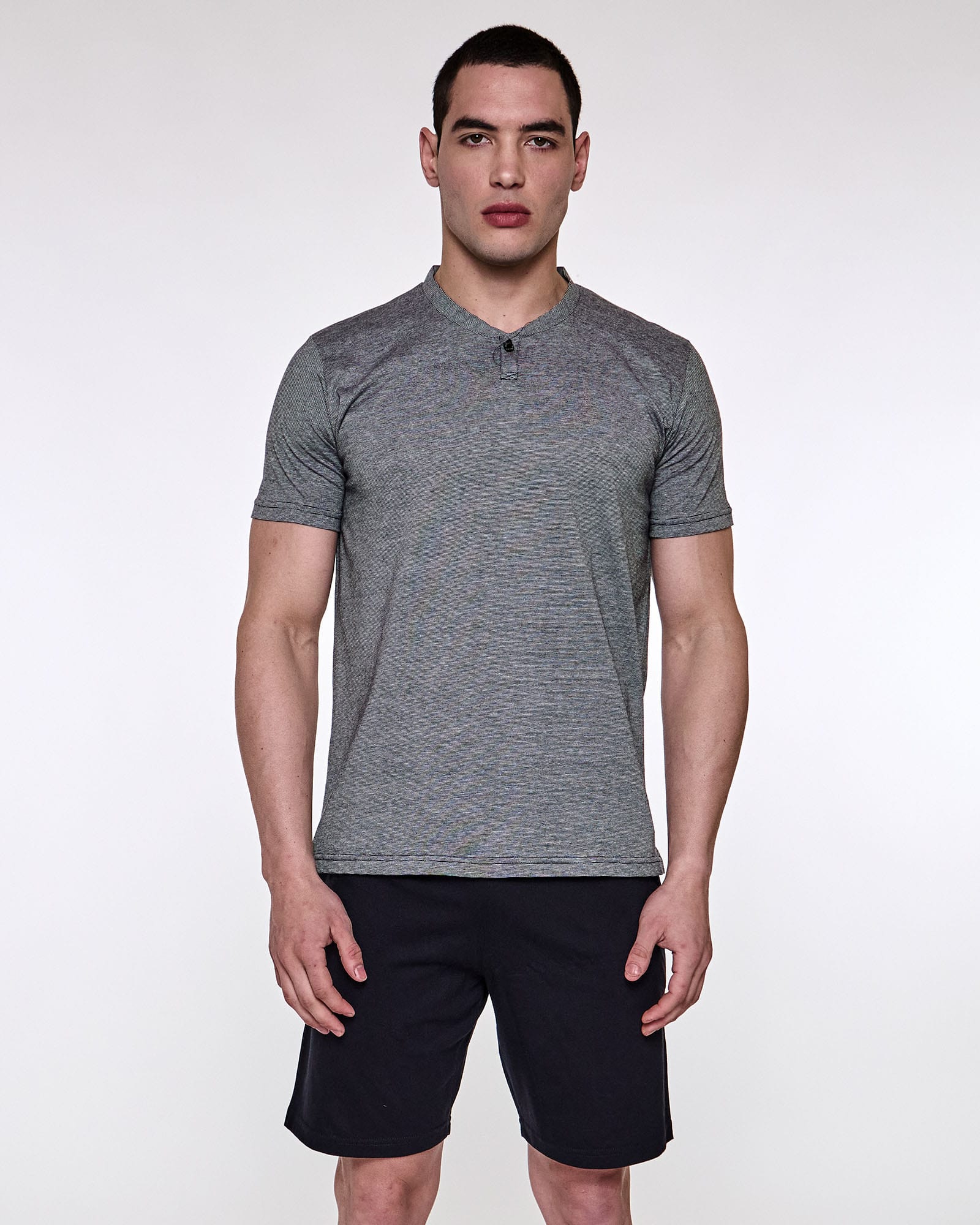 Pijama de hombre con cartera, manga corta. Tejido suave, resistente, duradero e hipoalergénico. Prenda suelta y cómoda.-